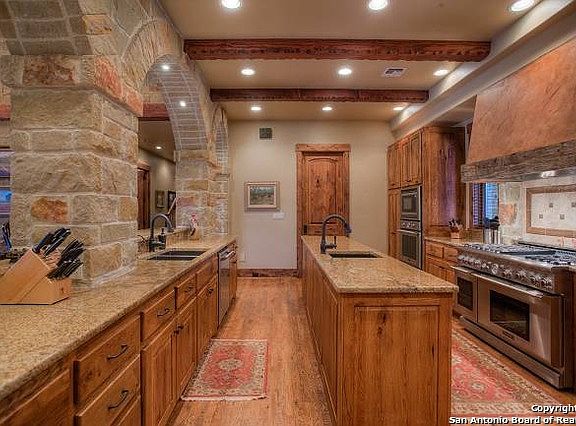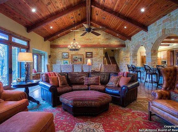 Magnificent 370 acre property on stunning, crystal clear Klein Branch Creek. The main house is situated above the creek providing fabulous views of the water and surrounding countryside, a very attractive one bedroom one bath guest house is located across the creek on the high bank of the creek. The main house is a masterpiece, approximately 7200 square feet with 5 bedrooms and 5 full bathrooms and on half bath. The house was built by Duecker Family Builders from Fredericksburg.