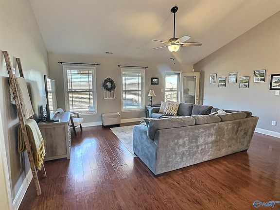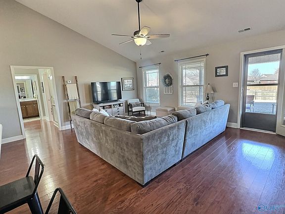 Beautiful 3 Bedroom/2 bath exceptionally well maintained home with vaulted ceilings, spacious great room and large kitchen located within a welcoming charming community loaded with exceptional lifestyle amenities. Trey ceiling in isolated Master Bedroom with a large master bath soaking tub and double vanities, with walk-in closet. Two additional bedrooms sharing guest bath on opposite side of home. Spacious fenced in yard with pavers and covered patio for entertaining. Plus a nice size 2 car garage. Convenient to I565, Redstone Arsenal and Boeing.