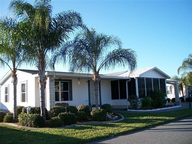 A sparkling & spotless 2br/2ba home 1170sf of living space plus an additional vinyl enclosed FLR with deco painted flooring. The home has a sizeable LR. There is an EIK with a brand new refrigerator, tile trimmed counters, pass thru bar to the LR and even some decorative glass cupboards. Both of the BR's will wrap you in comfort and have plenty of closet space. The MBA has a double sink vanity, tile flooring, walk in shower plus a linen closet. There is also a linen closet just outside the GBA. The home has upgraded blinds, tinted windows, extra electrical outlets outside and a new a/c. This home has a shed with shelving and pegboard, perfect for a handyman. There is a side by side, deco painted double carport and on the front of the home a large covered patio so you can kick back and enjoy the warm Florida breezes. The home overlooks a tropically landscaped lot with landscape curbing, timed sprinkler system and even palm trees. So come and relax all of your worries away with this fantastic deal! If you are destined for great retirement living than this prestigious Community is where you need to be. This is a 55+ Community where the minimum age for residency is 45 years old. There are activities for every lifestyle in this Community! The amenities are unsurpassed and include a country club style clubhouse, heated pool, spa, shuffleboard, tennis, horseshoes, exercise room, billiards, library, bingo, and a ballroom. It also has secured RV & boat storage. This is a pet friendly Community so your pets can enjoy the pampered lifestyle too! If location is important to you than this community will not disappoint you there either since it is located just 10 minutes from Disney and all of the Orlando attractions. You are also encompassed by a wide variety of shopping, restaurants, churches, medical facilities, numerous golf courses and Polk Countys 550 lakes. Within an hour is a major airport and Floridas famous white sand beaches. You are also within 30 minutes of Historic Bok Tower and Legoland. Sports fans you will love calling this Community home because you are minutes away from the Spring Training home of the Atlanta Braves. This Community takes great pride in its well maintained lots. You are surrounded by a warm tropical breeze blowing through the palm trees from the minute you enter the community. It represents everything the Florida lifestyle is all about. Spend the day at the pool soaking in the sun and the evening at Disney watching the fireworks. Davenport is located in the heart of Central Florida and has a population of around 5,000. It also has some of the most affordable living in the Orlando/Kissimmee area. Potential residents must meet the age requirements of the community for residency. This community requires that at least one homeowner be 55 years of age or older. Other residents must be a minimum of 45 years of age. All potential residents must be approved for residency prior to purchasing a home. The Thompson Team will be happy to assist you with the approval process. When looking for your new dream home, remember the advantages of a resale home such as this in a leased land community. You benefit greatly by purchasing in a leased land community as you do not have to pay property taxes! Included with all homes that we sell at full asking price is a 1 year home warranty which covers plumbing, electrical appliances and more. Financing is also available through local Lenders with as little as 25% down. One of our Sales Consultants would be honored to show you this fine Community or any other leased land Community which may be of interest to you. Call The Thompson Team at (863)325-8217 or email us at TheThompsonTeam@PamThompsonTeam.com or PamThompsonTeam@aol.com for more details or to schedule a showing appointment. Please be sure to visit and tour our showcase of manufactured homes on our web site at www.PamThompsonTeam.com and www.CentralFloridaManufacturedHomeSales.com.