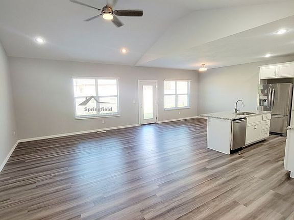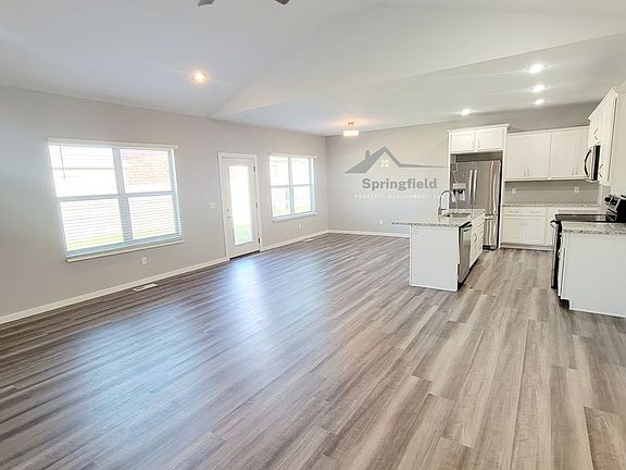 This home was built in 2022 (approx only 1.5 to 2 yrs old) and Boast of Brick & Stone, 3 Car Garage, Vaulted Ceilings, Vinyl Flooring, Ultra Open Floor Plan, White Cabinets / Granite Counters, Pantry, Large Walk-In-Closets etc. Entering the home you will notice the Vaulted Ceilings, Vinyl Flooring and the Ultra Open Floor Plan. This Great Room flows directly into the the Kitchen & Breakfast Area. The Kitchen has Stunning White Cabinets, Granite Counters, Large Granite Island w/ Bar Seating, All Stainless Appliances Including a Stainless Refrigerator. Large Pantry, Vinyl Flooring & Large Breakfast Area. The Master is Spacious and the Master Bath has a Large Vanity w/ Two (2) Sinks, Walk-In-Shower and Large Walk-In-Closet. There are Two other Bedrooms and another full Bath w/ Granite Counters. Schools are Century Elementary, Summit Intermediated, Nixa Junior High & Nixa High. This Home is Newer and Does Not Allow Smoking or Vaping. For a Private Showing....... Applications for this property can not be accepted through a different source such as Zillow, Trulia etc.