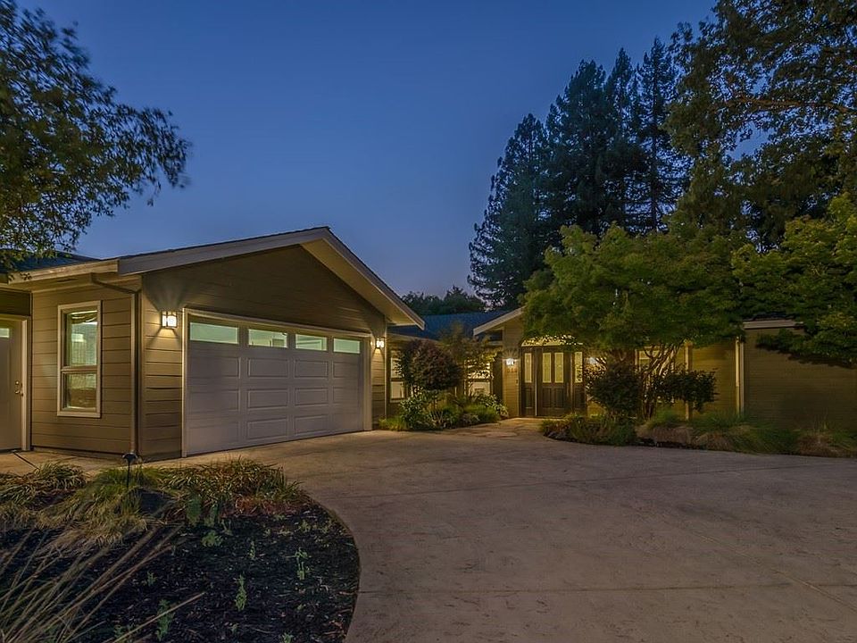 Situated on a cul-de-sac just a few parcels from the popular Lafayette-Moraga Trail, this beautifully appointed, spacious home enjoys one of the very best Trail Neighborhood locations. Easy access to schools, & vibrant downtown, this welcome retreat feels country while possessing all the conveniences of California suburban living. Well-designed, updated and expanded with quality finishes throughout, this home has a superb floor plan & walls of glass, creating a wonderful indoor/outdoor living environment. Attractive exterior + light and bright interior showcase the property. Private yard is spectacular with built-in barbecue, lovely pool & spa, backdrop of towering redwoods, native oaks and creek-side setting. Flat half acre lot landscaped extensively with California natives, with focus on drought tolerance & low maintenance. Fruit trees & raised vegetable beds. Owned solar for house. Lux primary suite with glass doors. A rare opportunity!