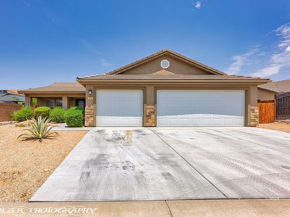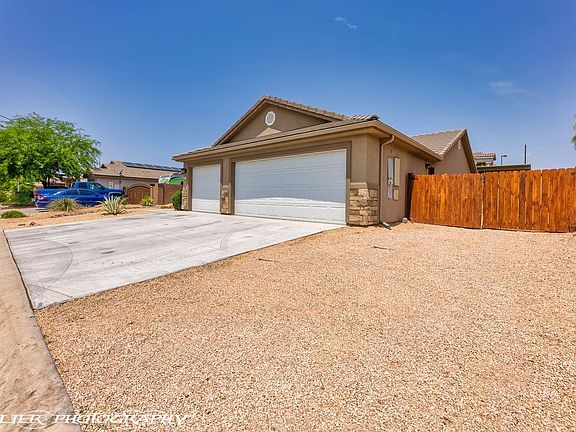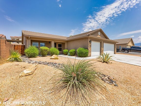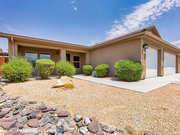 Located in Santa Theresa Estates, this spacious 4 bedroom home is a must see! As you step in you will notice a wide open floor plan with over sized living room and a beautiful kitchen, complete with granite counter tops and stainless appliances. Just off the entry you will find bedroom1 that can double for a den/office. Down the hall you will find a full sized guest bathroom and 2 more large guest bedrooms. At the end of the hall lies the master suite complete with large walk in closet and a spacious bathroom with granite vanity and double sinks. Out back you will find a large covered patio, nice garden area, RV parking on the side of the home and enough room for anything you can dream up! Intimate and beautifully landscaped, this small neighborhood has unusually large lots and even it's own park for residents. Close to several of Mesquite's famous golf courses and not far from casinos and shopping. Enjoy the nearby city parks and paved trails along the Virgin River. A Perfect setting for our sunny weather and friendly small town living.