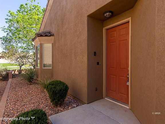 Located on the Falcon Ridge Golf Course.....overlooking the green and sandtraps. North facing backyard provides year round enjoyment on your back patio. Views of the fairways, green and sandtraps on the golf course...."that's living". Kitchen has rich colors in the granite counter tops. Tiled backsplash and a elevated bar in the kitchen for serving a quick breakfast or lunch. Living room has views of the golf course and a sliding glass door that opens up to a patio....perfect for entertaining your guests for a BBQ. Living room and dining area has tiled floors as does the entryway, hallways and both bathrooms. Master Bedroom has a large picture window that showcases views of the Falcon Ridge Golf Course. Master Bathroom has double sinks and a spacious shower. Two guest bedrooms are found on the opposite side of the townhome creating more privacy for your guests. Laundry Room has a large linen room closet in it, One Car Garage has direct access into the townhome. Available for a quick close.....move-in ready.