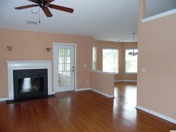 Beautiful backyard water view awaits you in this well kept 3 BR 2 BA home complete with stainless steel appliances, wood floors in kitchen, living and dining areas, fireplace with gas logs, underground gas tank, four season room, in ground sprinkler system, professionally stamped concrete, side entry door to garage, garage utility sink and more! Square footage is approximate, not guaranteed, Buyers are responsible for Verification of sq. footage, school and HOA info.