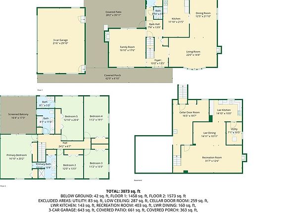 Second floor offers a primary bedroom with full bath and private enclosed deck. The other 4 bedrooms are generous in size with one of the bedrooms having a half bath. bath. All bedrooms offer excellent storage.