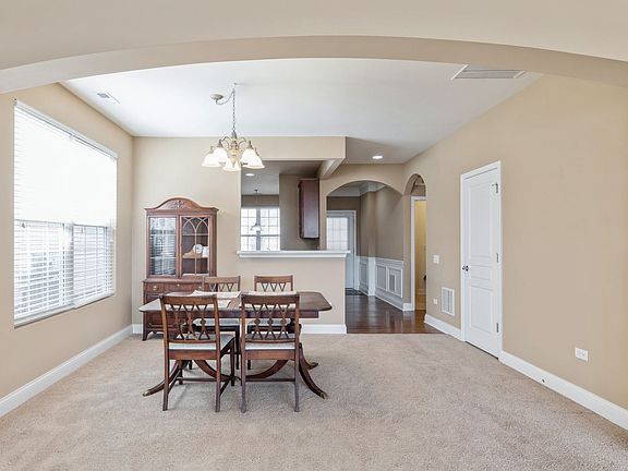 Fantastic Monroe with sunroom & front porch in Elgin's premiere gated 55+ community of Edgewater! Hardwood floors & wainscotting in the Foyer lead to a bright & welcoming Formal Dining Room open to the Living Room & Sunroom ~ Kitchen with hardwood floors, stainless steel appliances & eating area with pantry ~ Primary bedroom with bay- windows, huge walk-in closet & Ensuite Bath with tall vanity & a window ~ 2nd bedroom with full bath for guests, office or hobby room ~ Laundry Room with sink & cabinets too ~ From the Sunroom, step onto the entertaining-sized patio & enjoy the calm & quiet ~ Behind the home is a wide utility easement offering privacy & peace ~ Community has fantastic indoor & outdoor pools, fitness center, clubhouse with meeting rooms, tennis/pickleball, many clubs and is close to stores, restaurants & more ~ a must see!