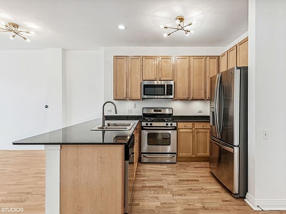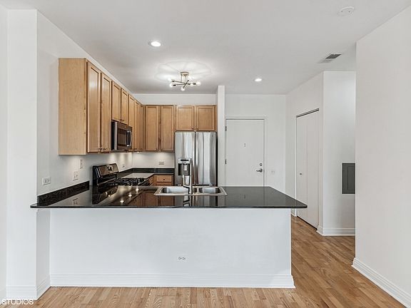 Discover an extraordinary opportunity in the highly sought-after River West district! This spacious 1-bed, 1.1-bath condo presents an open floor plan, complete with in-unit laundry and deeded ground-level parking included. Enjoy hardwood flooring throughout the living areas, while the kitchen shines with stainless steel appliances and an enormous granite breakfast bar. Step onto the balcony to savor breathtaking skyline vistas. The primary suite offers a walk-in closet (with closet system) and ensuite boasting dual sinks, soaking tub, and separate shower. Communal rooftop space elevates the living experience. Don't miss your chance to call this home!