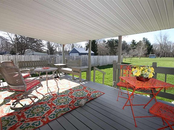 Welcome in the warm weather on the back covered porch which is the perfect breakfast spot or the place to end your day relaxing in the comfy swing. This property boast an acre lot with a 24x48 pole barn, built in 1993. It has room for 4 cars with a slider door in the back and an overhead door in the front, with concrete floor and electric. The home has been very well maintained, it has all vinyl windows, new front picture window in 2016 and new rear slider new in 2015. Deck and railing repainted in 2017. New water heater in fall of 2017. Easy access to schools, shopping, and highways.