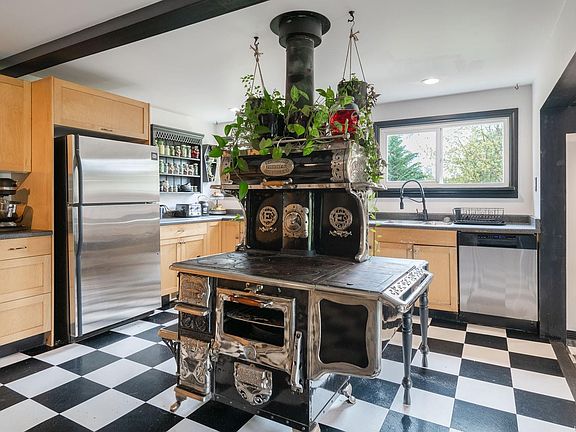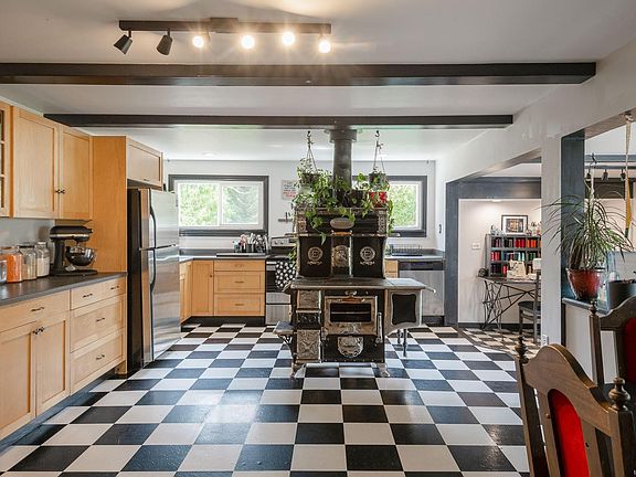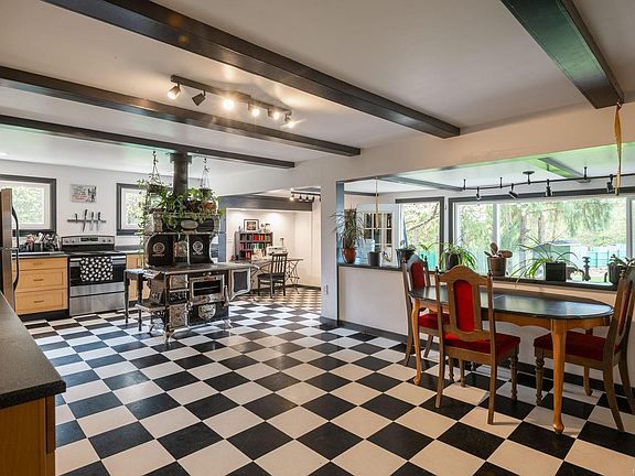 Set on a quiet, private 1.05-acre lot, this spacious home offers a rare blend of retreat and convenience. Surrounded by mature fruit trees and open space, it’s a place to breathe deeply and enjoy the outdoors. The kitchen features generous counter space and a vintage Enterprise Monarch wood cook stove - full of character and still functional. A breakfast nook welcomes slow mornings, while a pony wall defines the dining area for shared meals. Walk-out access leads to a large concrete patio, ideal for barbecues or evenings under the stars. Upstairs offers four comfortable bedrooms, a light-filled living room with direct outdoor access, and a bathroom with jetted tub. The lower level adds two more bedrooms, laundry, storage, and flexibility. Recent upgrades include a new septic system and gutters. The fully fenced yard has a workshop and parking for RVs, boats, or more. Minutes from Stamp River Park, this home balances space, comfort, and possibility. Call to arrange a private viewing.