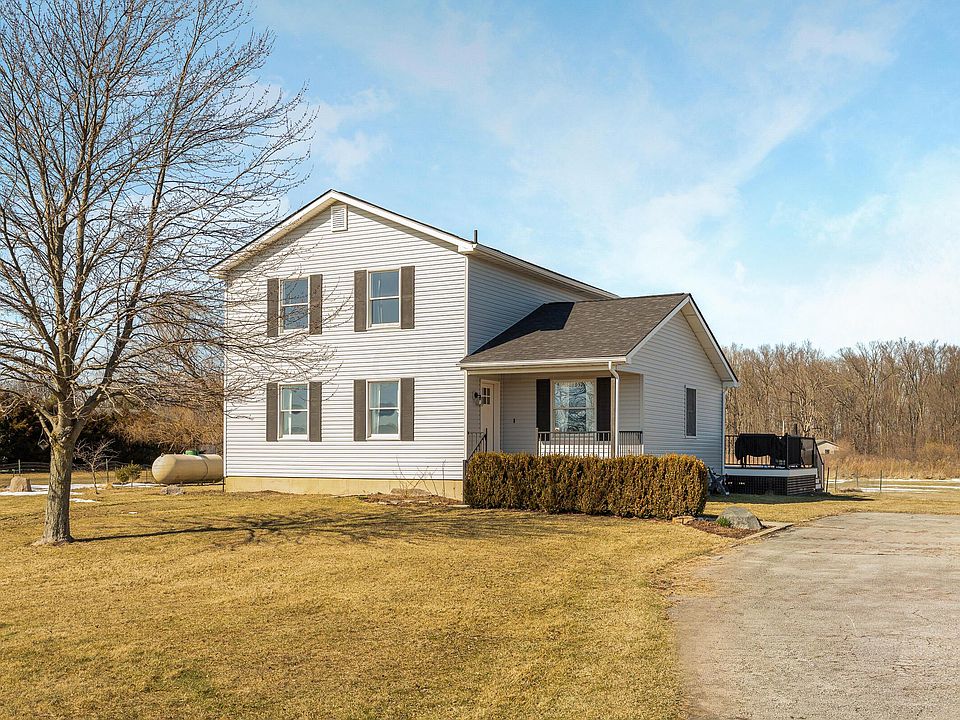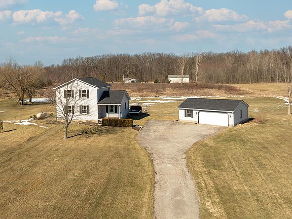 Immerse yourself in the beauty of rural Ohio & this exquisitely renovated 4BR, 2.1-bath home nestled on 5 acres + 3-car Garage w/workshop. This tranquil home showcases an open-concept floor plan w/wood floors & meticulous craftsmanship. The entry-level features a stunning updated kitchen w/butcher block counters & large island w/gas stove, stainless steel appliances, & ample storage space. New half bath & Elegant 1st flr primary suite w/custom shower & large walk-in closet. Extend living space outdoors and watch the Willow & Fruit trees bloom from the composite deck & covered front porch. High-speed fiber optic internet, new roof in '22, siding/gutters/soffit in '24, electric panel '24, HVAC '23, & water heater '21. X-tall basement offers the potential to finish.