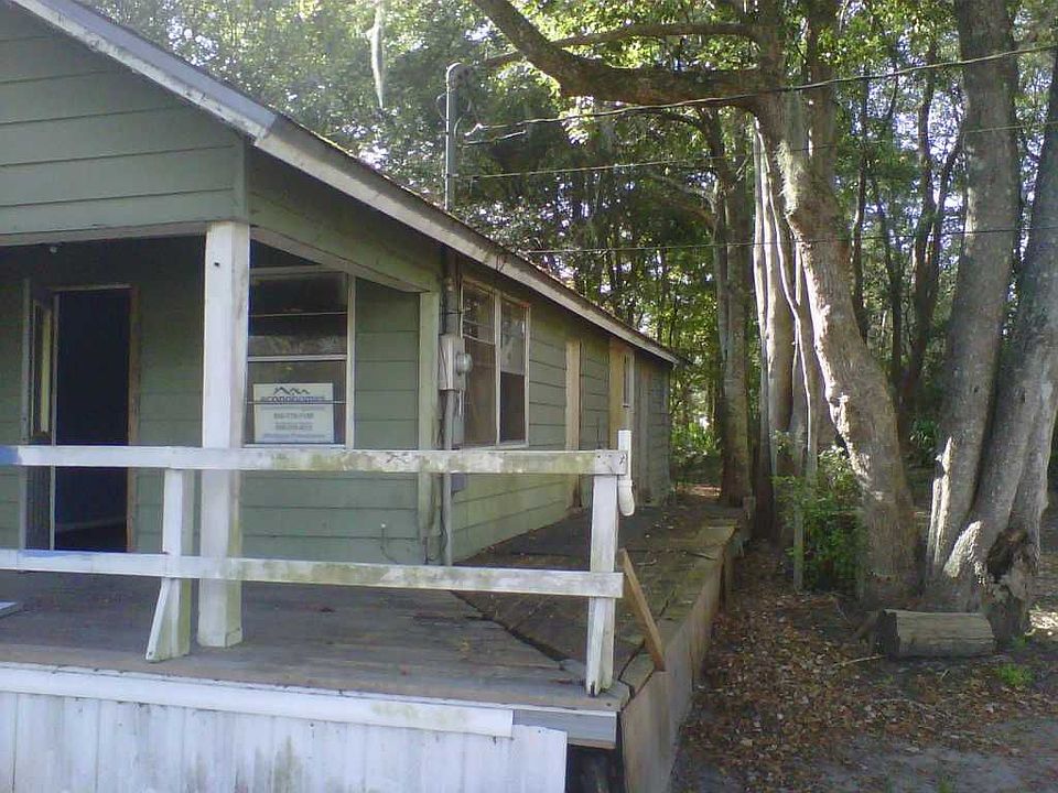 Exterior Features:This 3 bedroom 1 1/2. Bath raised foundation home with no fencing, sits on large corner lot, and a wooden front porch with some missing planks. Roof is shingle with eves that are aluminum and present. There is not a driveway or a garage but plenty of room to build one.Many windows are broken but are secure with wood planks.Interior Features:Front room has green carpet through out the entire home and bedrooms, also there is writing on walls. Wooden cabinets in kitchen. And only an electric stove, old water heater and washer remain. Back utility room has open hole in the floor. The half bath is an addition on the back of the house, and the main bathroom has rust stains in the tub.