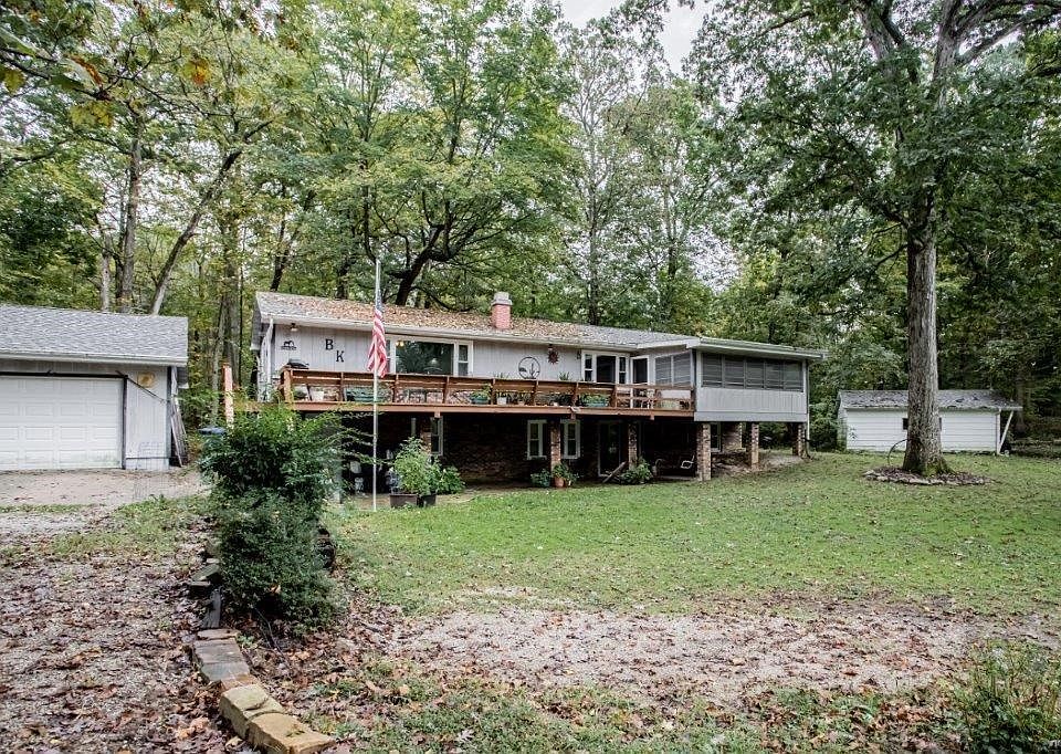 Sit on the huge deck or walk out patio and watch the deer and wildlife from this awesome 3 bedroom, 2 full bath home just east across the street from Moraine View State Park. This home has huge kitchen with island, pantry and all appliances. Hardwood floors in kitchen and living room. 2 stair cases lead to family room with fireplace, 2 more bedrooms and full bath. family room has sliding glass door to huge concrete patio. Large storage room, 2car detached garage, storage shed and screened patio. house sits on 3 lots, with south lot being a buildable lot with garage and it own septic. Total of all lots is 1.14 Acres. newer roof 2016, windows 2017, furnace and A/C "97,