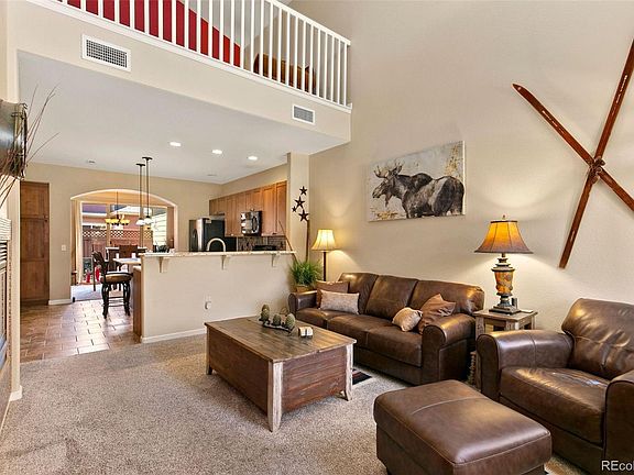 METICULOUSLY CARED FOR HOME IN COVETED GOLD PEAK. A GATED RESORT-STYLE COMMUNITY LOCATED IN HIGHLANDS RANCH. IT ALL STARTS WITH THE CHARMING LIVING ROOM THAT FEATURES A 20 FT CATHEDRAL CEILING~GAS FIREPLACE WITH MOSAIC TILE SURROUND~CUSTOM WINDOW COVERINGS AND NEWER PLUSH CARPET/PAD. YOUR UPDATED CHEF'S KITCHEN SHINES WITH CARAMEL SWIRL SLAB GRANITE COUNTERS~TILE BACKSPLASH~BLACK STONE SINK~BREAKFAST BAR~CENTER ISLAND W/ PENDANT LIGHTING AND UPDATED SLAB GRANITE COUNTER~ALL APPLIANCES INCLUDED~MAPLE CABINETS~TWO PANTRIES AND TILE FLOORING~THE MAIN FLOOR PRIMARY SUITE IS GRANDIOSE IN SIZE~INCLUDES, UPDATED PLUSH CARPET/PAD~ EXPANDED WINDOW WITH CUSTOM BLINDS~YOUR PRIMARY BATH FEATURES LAMINATE COUNTER~DUAL SINKS~UPDATED LIGHTING & FIXTURES~LARGE WALK-IN CLOSET~HUGE SOAKER TUB AND SHOWER. THE UPSTAIRS BOASTS UPGRADED CARPET/PAD~TWO BEDROOMS AND A FULL BATH~LARGE LOFT AREA THAT OVERLOOKS THE LIVING ROOM, AND A HOBBY ROOM THAT CAN BE USED AS AN OFFICE~STORAGE~CRAFTS~AND MUCH MORE. THE MAIN FLOOR LAUNDRY INCLUDES THE WASHER/DRYER ~CUSTOM OVERHEAD LIGHTING AND A FOLDING STATION~THE GARAGE FEATURES A NEW OPENER~UPDATED SPRINGS AND 8 Ft OVERSIZED DOOR. GATED COMMUNITY WITH FITNESS* BASKETBALL* TENNIS / PICKLEBALL* POOLS/HOT TUBS* SAUNA / MEN'S & LADIES LOCKER ROOMS* HORSESHOES* VOLLEYBALL* BASEBALL DIAMOND* CHILDREN'S AREA* RACQUETBALL COURTS* DOG PARK~PUTTING GREEN, FRISBEE GOLF, AND SO MUCH MORE*SEE OUR VIRTUAL TOUR!! https://www.tourfactory.com/3091528