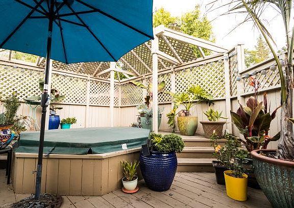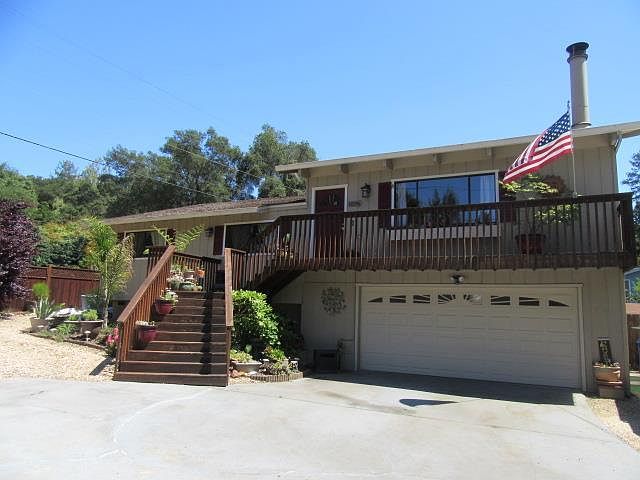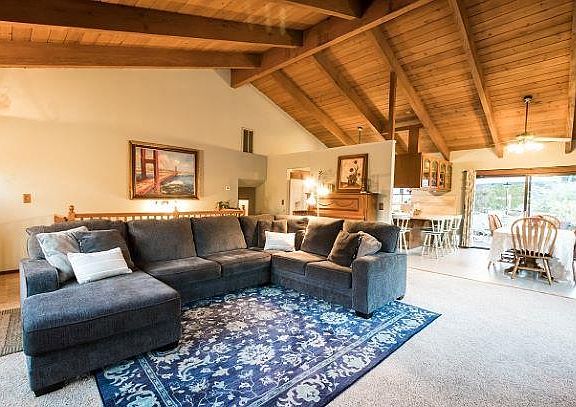 CHECK IT OUT: 8596 Glen Arbor, Ben Lomond, $849,000. Ben Lomond sunshine special! Appreciate mountain views from this spacious quarter acre lot! Relax with nights on the patio, in the hot tub, or warming up around the fire pit. Large, contemporary home featuring an open floor plan and generously sized living room with vaulted exposed beam ceilings and a tastefully tiled fireplace. Kitchen opens up to dining area and out to the deck for easy entertaining! The three bedrooms share one level, separated from the main living area by a small stair case. The large master bedroom contains walk in closets and an en-suite bathroom. Large man cave/music room (24 x 12 feet) on a separate level with its own slider to the back yard. Explore the possibility of making that man cave an income producing ADU. Parking for 8 cars, RV parking with septic connection. A gardeners delight with raised flower beds and established landscaping. Hurry and make this home yours!