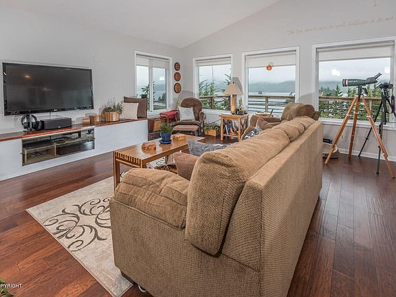 This 3 BR/2.5 BA home is perfect for a large extended family. Detached self-contained 600 Sq Ft apartment/aux building will accommodate Mother-in-Law or overnight guests. Auxiliary building is operated as a VRBO B&B and has proven income history.Main home has lower level entry. Upper level has open floor plan with lots of natural light and breath taking unobstructed views of Tongass Narrows & Gravina Is. Kitchen is modern and bright w/skylight a large pantry and is open to Living Rm. Kitchen has Quartz countertops and lots of prep space for the gourmet chef. Upper level has vaulted ceiling, hickory hardwood flooring throughout, and radiant in-floor heating. Open floor plan is perfect for entertaining guests & family. Large master suite has attached BA w/jetted tub & a walk in closet. Lower level has 2 BR, 1 BA plus a large utility room with deep well sink. Lower level includes a private office area and a large TV/family room. Extended deck on lower level includes a covered area for hot tub. Attached garage has room for two cars or can be converted to shop for a handy man. Self-contained 20'X30' auxiliary building has compact kitchen area, 1 BR, 1 Bath with stackable washer/dryer and a large loft area great for overnight guests. Lots of outdoor space for the gardener includes just enough grass to justify owning a lawn mower and plenty of parking for the RV or your boat. The perfect home for your growing family Gravina Is. Kitchen is modern and bright w/skylight a large pantry and is open to Living Rm. Kitchen has Quartz countertops and lots of prep space for the gourmet chef. Upper level has vaulted ceiling, hickory hardwood flooring throughout, and radiant in-floor heating. Open floor plan is perfect for entertaining guests & family. Large master suite has attached BA w/jetted tub & a walk in closet. Lower level has 2 BR, 1 BA plus a large utility room with deep well sink. Lower level includes a private office area and a large TV/family room. Extended deck on lower level includes a covered area for hot tub. Attached garage has room for two cars or can be converted to shop for a handy man. Self-contained 20'X30' auxiliary building has compact kitchen area, 1 BR, 1 Bath with stackable washer/dryer and a large loft area great for overnight guests. Lots of outdoor space for the gardener includes just enough grass to justify owning a lawn mower and plenty of parking for the RV or your boat. The perfect home for your growing family
