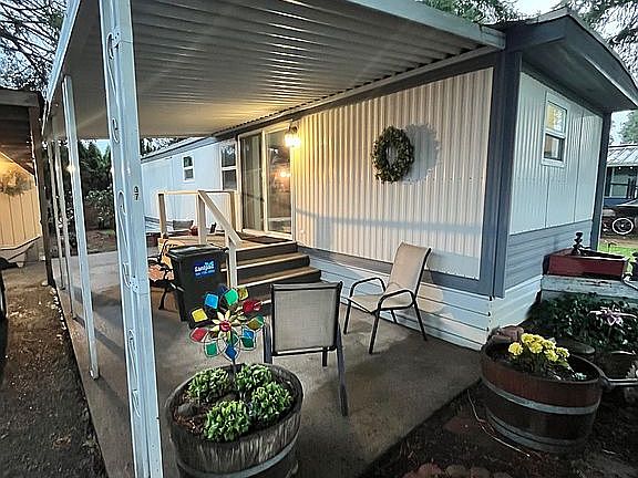 Beautifully remodeled one bedroom home In a quiet, 55+ community. Step into this fully remodeled and thoughtfully updated mobile home located in a peaceful and a well – maintained 55+ park. Every detail has been carefully upgraded to provide comfort, style, and worry, free living. This home features brand – new Pex, plumbing, updated electrical, and luxury vinyl plank for flooring throughout. The interior has been completely redone with new walls, ceilings, windows, and doors, given the space a clean modern feel from top to bottom. The kitchen is warm and functional offering, newer oak cabinets a tile, backsplash, and efficient layout for easy daily living. The bathroom has been beautifully redesigned with a new vanity, walk-in shower and elegant porcelain tile. It has one bedroom and a large laundry room with a walk-in closet, creating a practical and comfortable living arrangement. this home also includes a newer rubber roof, adding extra durability and peace of mind. The lot also has a covered carport patio and two storage sheds. this lot sits within a quiet attractive community featuring a clubhouse, equipped with a full kitchen, game area, and pool table-a perfect space to relax or meet with neighbors and friends. Lot rent is in Affordable 645 per month, which includes water, sewer, and trash. This home has been completely remodeled from top to bottom – truly move in ready and design for comfortable, low-maintenance living. For sale by owner no realtor needed. Call Mike 541-948-0132