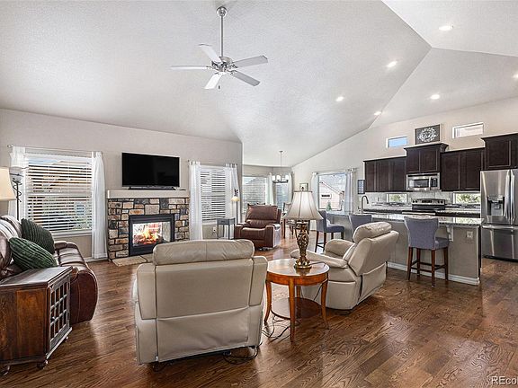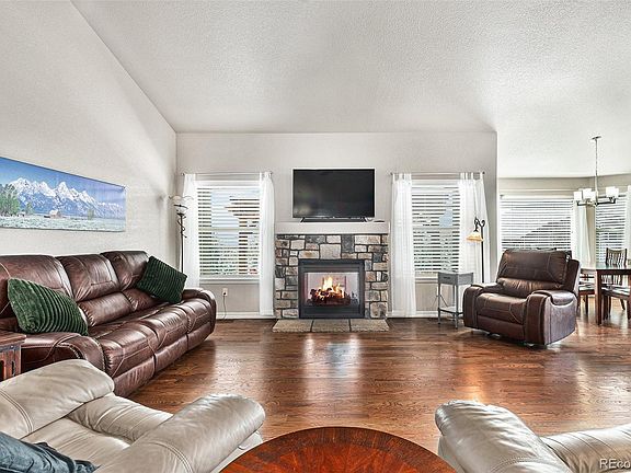 Banning Lewis Ranch STUNNER!! Welcome home to Moorland Lane where upon entry you are greeted with vaulted ceilings, beautiful new hard wood flooring and open concept living. A true Chef's kitchen features granite counters, elegant cabinetry, stainless steel appliances and ample counter space. Gather around the fireplace sipping hot coffee and Hallmark movies, then retire to the large primary with 5 piece en-suite bathroom and walk-in closet. A main floor office/bedroom with full bathroom and a large laundry room with a closet rounds out the main level. Venture downstairs to find a huge recreation/living room with full bathroom and two spacious bedrooms. This home has low maintenance stucco siding with beautiful brick accent, the 3 car and extra deep garage provides plenty of room for your vehicles AND your tools. The master planned community of Banning Lewis Ranch boasts it's own K-8 school, 2 pools, a water park, huge clubhouse, fitness center, walking and biking paths and many playgrounds throughout