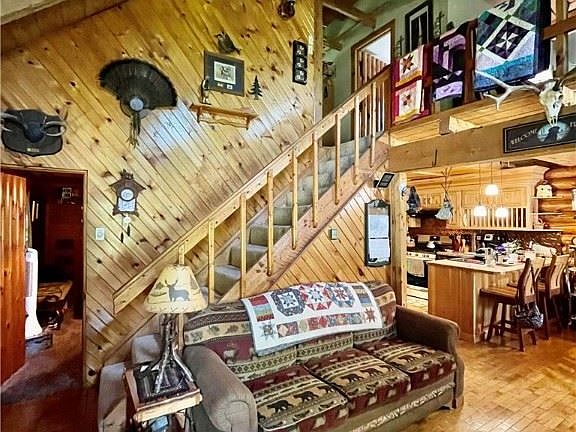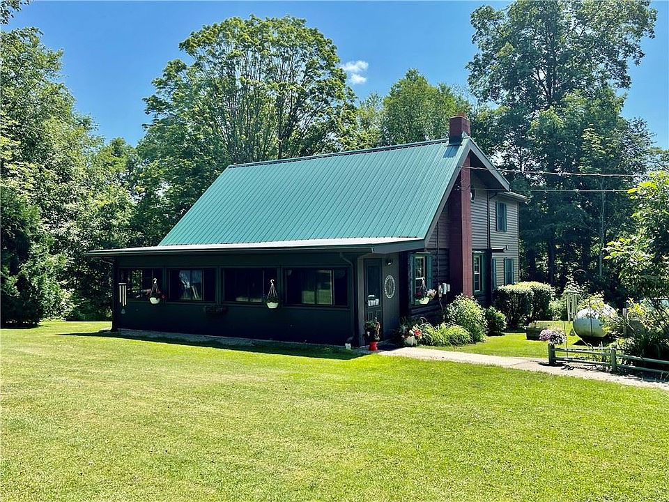 Welcome to 8598 Armstrong Road! Located on a dead end dirt road in the Penncrest School District, this log cabin has lots to offer. Enclosed front porch allows you to enjoy the outdoors 365 days a year! First floor offers an open living room, dining area, and newly updated kitchen. Custom hardwood flooring throughout the first floor is the first thing you're going to notice when you walk through the front door! The pellet stove keeps the log cabin warm throughout the whole winter. Newer roof, windows, and furnace are just a handful of the recent updates. Laundry room, full bathroom, and second bedroom are also on the first floor. Full bathroom and two additional rooms are in the loft area, one designated as a bedroom. Two car detached garage, and a shed for extra storage. This home is situated on 10 acres with a yard and gardens that could be in a magazine! Grape vine covered pergola offers an enormous amount of shade in the summer when you're grilling or hosting a picnic.