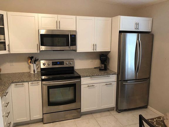 Seasonal Rental - Beautiful 2 BR 2 BA. Single floor condo with parking right out front (2 parking spots). Located in quiet adult community with pool, tennis court and walking sidewalks, with ponds throughout beautifully maintained property. Fully equipped kitchen, 3 TV's - cable, wireless internet. Remodeled updated unit - clean & fresh. No carpet. Screened-in porch overlooking gardens. Linens, towels, w/d in unit. Close to beach, grocery stores, shopping, dining and more. Leave the cold and snow behind. Perfect location to spend the holidays and winter! Whisper Walk is a 55+ community. There is a recreation complex with 8 tennis courts, 4 paddle ball/handball courts, 2 pickle ball courts, and a basketball net. Amenities include a large clubhouse, a heated swimming pool, a hot tub