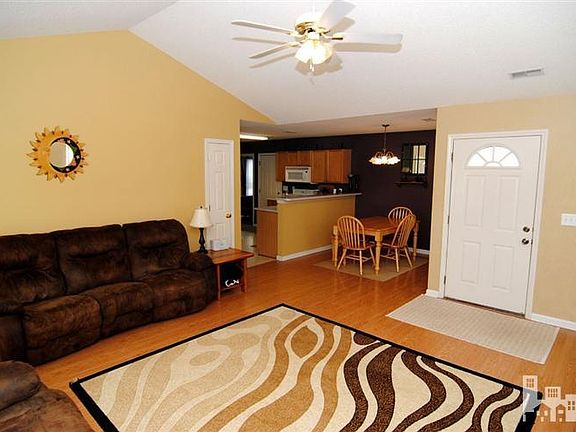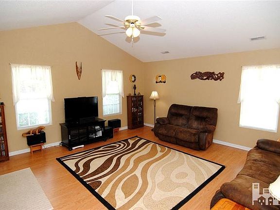 This well maintained home boasts an open kitchen with a built in microwave & a long bar top for gathering around. Laminate wood flooring is in the vaulted living room and all 3 bedrooms. Both bathrooms have ceramic tile flooring. There is no carpet in this charming open floor plan home! The relaxing master suite has a vaulted bedroom, walk-in closet, and its own full bathroom. Beautiful French doors open up to the great backyard space which is fully fenced, has a patio, and a mature tree providing shade. This home also has a convenient laundry room, low maintenance vinyl siding exterior, a garage, & the HVAC is brand new. The community has sidewalks and a pond with a fountain at the entrance.