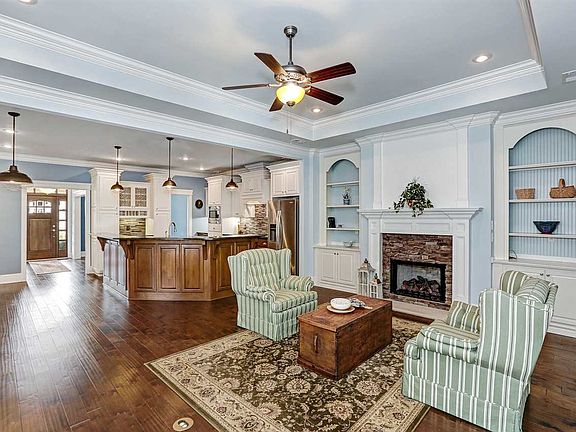 - FAMILY ROOM DESC: Ceiling Fan, Smooth Ceiling, Wood Floor, Crown Mold, Fireplace, 9? Ceiling, Trey
