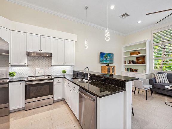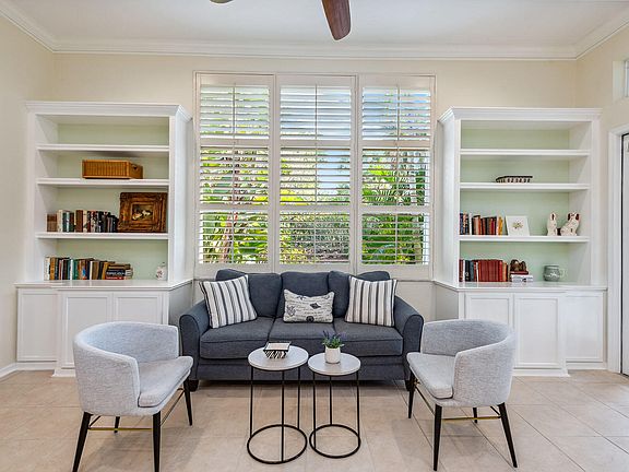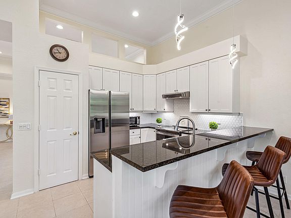 The lowest-priced move-in-ready three-bedroom, two-bath single-family home in Fiddler's Creek, this furnished residence presents an exceptional opportunity to enjoy one of Naples' most award-winning communities. Offering 1,956 square feet of thoughtfully designed living space, the home features three bedrooms, two baths, and a two-car garage, all set against a backdrop of recently revitalized, manicured landscaping. A freshly painted exterior, updated lighting, and a paver driveway and walkway enhance the home's inviting curb appeal, while the generously sized backyard offers ample room for outdoor enjoyment and gardening. A large covered and newly screened lanai further extends the living space outdoors. Inside, the freshly painted interior is light-filled and welcoming, highlighted by 12-foot ceilings, crown molding, plantation shutters, French doors, and updated lighting and ceiling fans throughout. The open kitchen has been tastefully updated with white cabinetry, granite countertops, a stylish tile backsplash, pantry storage, and updated stainless steel appliances. Designed for both entertaining and everyday living, the kitchen flows seamlessly into the family room, ideal for relaxed TV viewing or gathering with guests. Oversized windows flood the great room and dining area with natural light, creating an airy and comfortable atmosphere. The owner's suite serves as a private retreat, featuring engineered hardwood flooring, two walk-in closets, and an updated en-suite bath with dual vanities, a walk-in shower, soaking tub, and enclosed water closet. Additional highlights include a well-appointed laundry room with nearly new front-loading Samsung washer and dryer, a newer stainless steel utility sink, and a newer Rheem hot water heater. Residents enjoy an exceptional lifestyle with scenic walking and biking paths, lush surroundings, and access to an award-winning gated community known for its resort-style amenities. These include multiple pools with waterfalls and slides, fine and casual dining venues, ten pickleball courts, tennis, a full-service fitness center with classes and trainers, spa services, and a vibrant social calendar. Optional memberships—with no golf waitlist—offer access to the recently renovated championship golf course, new golf clubhouse, marina, and private beach club.