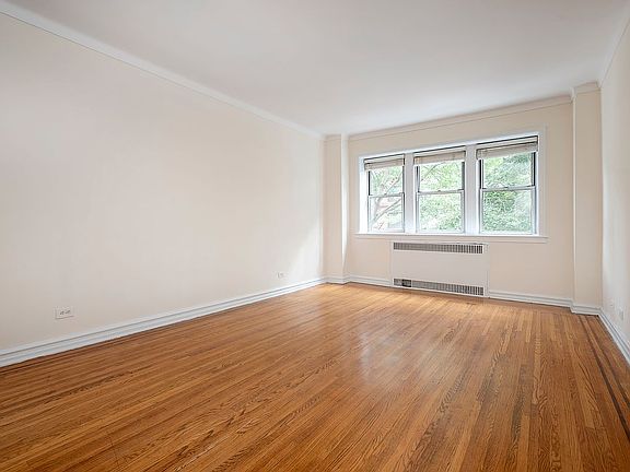 This bright pre-war one-bedroom apartment is spacious, with lots of natural light from south and east exposures. Sizable rooms include an eat in galley kitchen, king sized bedroom, formal dining room, and large living space perfect for entertaining. Some of the original pre-war features are oak floors, plaster walls, and high ceilings, and bathroom with original tiling and separate shower stall.