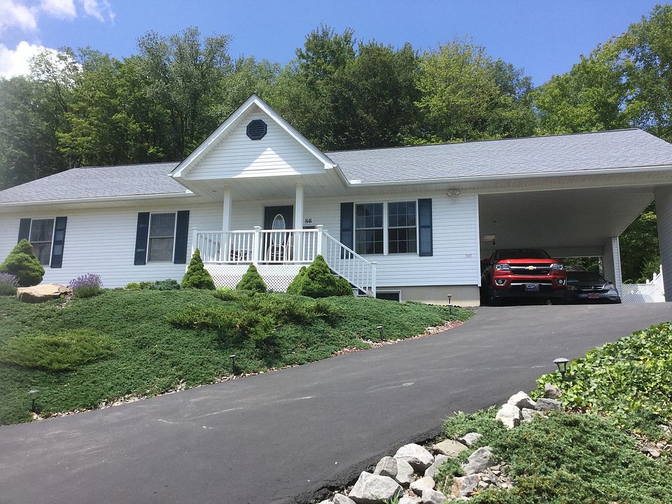 Ranch 8 ft ceilings. Central air, gas forced air heat, laminate floors, granite kitchen, 550sq ft carport. Fell township taxes 9 ft ceiling in basement, forever walls, insulated and studded.