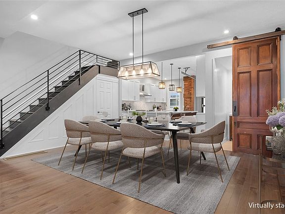 Absolutely beautiful, thoughtfully-designed renovation in Central Lawrenceville! Unique location very close to the river trail, farmers' market, and dog park, yet just a few blocks down from Butler Street. Truly the best of both worlds! The open main level features spacious living and dining areas, a custom reclaimed-wood mantel, a full wall of built-ins, a wine bar, a charming powder room, and a gorgeous gourmet kitchen with 10-foot island. Raise the modern glass garage door for al fresco vibes and entertaining! Upstairs you'll find four spacious bedrooms, including the primary suite, guest room with access to the upper deck, and huge third floor bedroom. Second floor laundry, too! Engineered hardwood floors throughout. Wonderful outdoor space with two decks overlooking the rear yard, plus off-street parking for two vehicles (with Tesla charger included!). Solar panels included for low electric bills. Move right in and enjoy all that Lawrenceville has to offer!