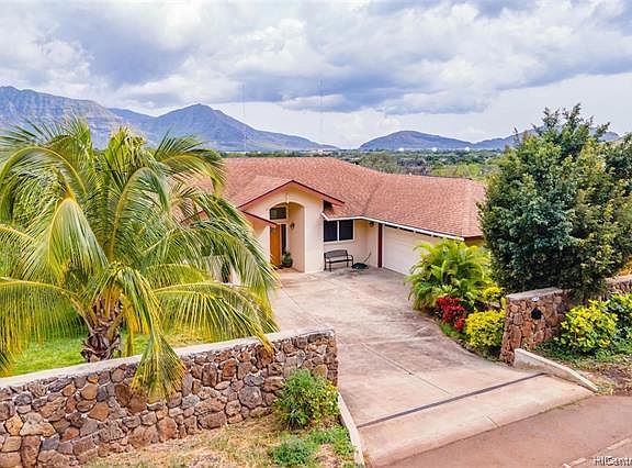 ***MOTIVATED SELLER*** Situated in the largest coastal valley on Oahu's leeward (west) coast in Waianae. Enjoy and witness the amazing breathtaking panoramic views of the Wai'anae Mountain Range with beautiful sunrise and dramatic mesmerizing sunsets at night from every room of the house. Open living concept, living area and dining spaces border the open spacious lanai. With over 2,300 sf (roofed area)high ceilings, split A/C in every room and living area, partial marble tile, stainless steel appliances, and partial wood flooring, with over an acre of land Sqft. of 46,645. Newly installed 26 PV (photovoltaic solar) OWNED for LOW electricity bill, fence rock wall upfront, front water drainage and beautiful landscape. The spacious master suite offers a renovated full bathroom with a jacuzzi tub, stand up shower with marble tiles, and sliding door access to the lanai to see the amazing mountain views. SEE VIRTUAL TOUR VIDEO AND MATTER PORT 3D UNDER LINK FOR BETTER EXPERIENCE.
