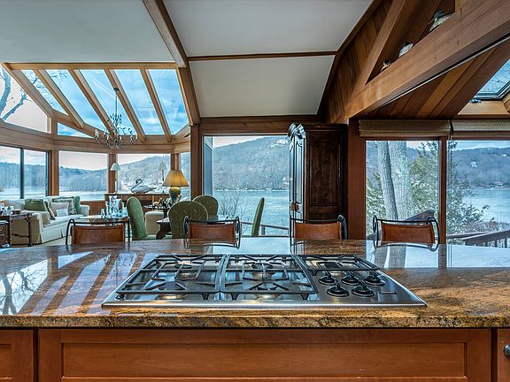 Located in the gated community of Candlewood Isle - be the owner of two homes that have the perfect views of Candlewood Lake. The first home has an open floor plan featuring an octagon shaped area off the living room with amazing views of the lake. The kitchen has granite counter tops, ample storage and skylights for natural sunlight. The hardwood flooring flows throughout the entire dining area, living room area and both bedrooms. The first of 2 bedrooms is a master suite which has a master bathroom featuring a separate shower and tub, double sinks and storage. The 2nd bedroom and 2nd full bathroom are off the hallway. The living room has a large stone fireplace and slider doors which lead out to either the stone patio or deck areas which go down to lower decks for more entertaining areas come down to the water line of the lake where you will find a shed for storage of water toys, fishing gear, etc. There are a total of 4 docks for all the summer fun. The second home has a two car garage and has been totally renovated to absorb the spectacular lake views. From the glistening floors to the new kitchen and bathroom. A true must see!