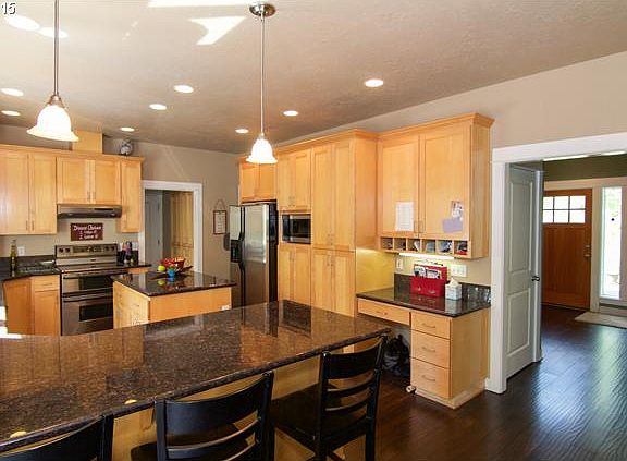 Three story large sized home for a big family! Custom maple cabinets in kitchen, Alder in bathrooms and Hickory in basement. Great use of space! Top floor hosts 4 large bedrooms, the laundry room(upstairs where the clothes are),and a huge bathroom for the kids with large linen cabinets, double sinks and tub/shower. Beautiful vaulted master bedroom and a bath with walk-in closet and built in dressers. Separate toilet and shower room, Jetted tub and 2 sinks. Main floor amenities include a huge kitchen with large bar area and an island. Whole wall of cabinets between kit and garage. Formal dining room, family room open to kitchen, an office with 2 sets of pocket doors for privacy and a bathroom with cute pedestal sink and a shower. Oustide has a huge deck the length of the house to enjoy feeling like you are in the woods! Special outlet outside for RV hook-up. Special Generator option on elec panel in case of emergency-you can run micro, fridge and some lights. Upgraded two panel doors with custom white mouldings and surrounds. A quiet, end of the street lot surrounded by trees and next to Palmer Creek and Yamhill River. Basement has huge rec room with more built-ins for a kitchenette area and a bedroom. New Heat Pump for forced air heat and air conditioning being installed shortly. Please contact Jolie if you would like more info or a viewing. House is going on the market in the spring!