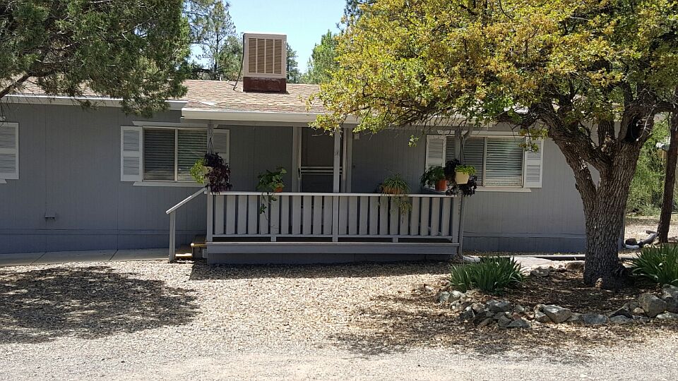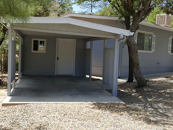 Conveniently located re-modeled home situated on a spacious lot that includes ample parking and a carport with storage/workshop. This 2 bedroom/2 bath, 1448sf home checks all the boxes and is walking distance to the clubhouse, courts, pool & jacuzzi. Square footage includes a 200sf winterized Arizona room for year-round enjoyment. Highlights include new stainless-steel appliances, new fixtures & faucets, freshly painted with new outside shutters & outside window trim, plantation shutters throughout and a water heater that is only 2 years old.Located in a 55+ community that is walking distance to the Prescott National forest. The monthly site lease is $967.20 per month and you will have peace of mind knowing all residents go through a background and credit check.