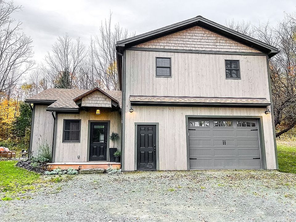 Gorgeous 2-year-old modern traditional home just 1 mile from Lake Elmore! Home features 4 bedrooms, 2 ½ baths, and an attached oversized 1 car garage with mudroom. Large open floor plan with cathedral ceilings and skylights for optimal natural lighting. Open kitchen, dining, and living room concept overlooking the spring fed pond. This home is cozy with radiant heat throughout first floor and a gas fireplace for ambience. Eat-in kitchen granite counter with custom maple open shelving and built-in butcher-block counter. Master bedroom located on 1st floor with en-suite bathroom including double vanity, soaking tub, tile shower and his and her walk-in closets. 3 bedrooms and full bath on the 2nd floor. Home sits on 3.9 areas located on a quite dead-end road. Property features flagstone patio and hammock area overlooking pond, established garden, and detached shed for extra storage. Enjoy your coffee on the outdoor patio watching the ducks swim in the pond. Relax in the evening around a cozy fireplace. Just 20 minutes to Stowe, 10 minutes to Morrisville, 30 Minutes to Montpelier, and 1 hour to the scenic White Mountains!