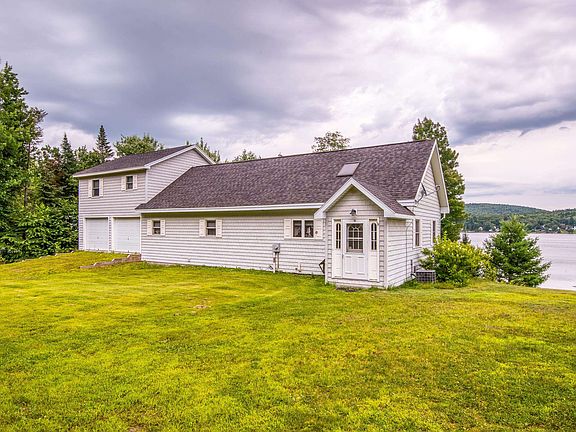 This waterfront 5 bedroom, 3 bath home on 276 acre Akers Pond, offers stunning lake views from almost every room! Move in ready, as the home is being sold fully furnished. Main floor has open concept kitchen/lr with knotty pine walls and 3/4 hall bath with laundry area and two bedrooms one of which is a spacious primary en suite bedroom with jetted tub, double sinks and more. Both bedrooms, as well as the living room, open directly onto the full length rear deck. A long bonus room area on the level above attractively overlooks the floor below and is a perfect space to use as an extra bedroom or gathering area. This walk thru room leads to 3 more bedrooms with ceiling fans and another 3/4 bath. This section of the home was added in 2014 as well as a new roof. Head down to the basement to a finished family room with direct access to the outside and 200 feet of lake frontage with removable dock and an attractive fire pit seating area. The multi level attached garages easily accommodate 4 vehicles/boats plus all your other vacation time toys like ATVs, snow machines, riding mowers, tools and more. Central AC , Vac, and standby generator.