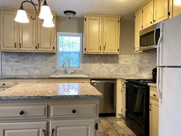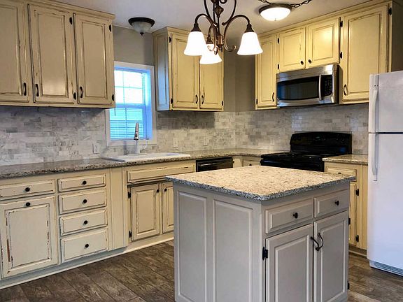 Lovely Bi level 3 bd, 2 bath home. Recently updated! Must see this one. Cabinets finished in shabby chic. Real Barn door to large storage closet, pantry, granite countertops, brand new microwave, stainless dishwasher, water heater and heat pump, textured wood tile flooring, tiled bathrooms and carpeting in bedrooms, lower level den has wood ceiling and painted brick wall . Very Large downstairs laundry room with extra refrigerator/ freezer. Bedrooms are large, good closet storage, master bedroom up and 2 bedrooms on lower level with walk out in Den. Large bathrooms with tub/ shower combos. NEW carport and 2 large sheds for extra storage. Back deck overlooks forest. Newer roof. Wired for satellite. Privately located at the end of the road, surrounded by the Ozark mountain woods and hills that are full of wildlife.