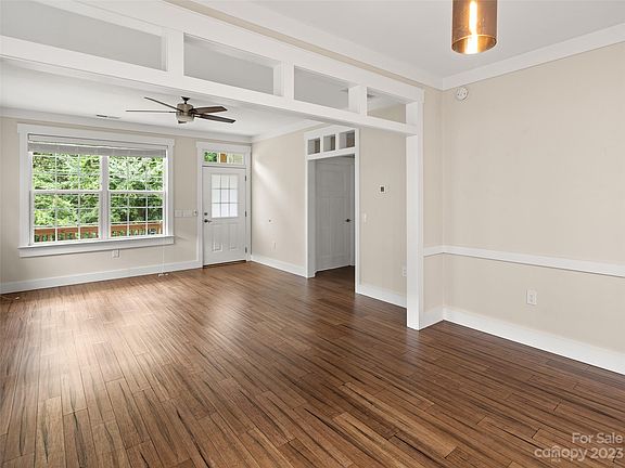 This home is designed to impress! The minute you walk in the door you will fall in love with the open floor plan with nine foot ceilings, accessorized with modern lighting fixtures and ceiling fans. The bamboo flooring creates warmth and tranquility. The transom features add an elegance that shows no detail was spared. The upscale kitchen is complete with granite countertops and stainless steel appliances. Relax on the covered front porch or enjoy the ambience of the back patio. The patio backs up to a wooded area which provides privacy. Convenient to Highland Brewery, Biltmore Village and Downtown Asheville. This is a home you don't want to miss.