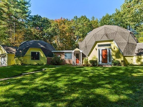 Offer Deadline Sunday 12/12 at 5pm. Geodesic Dome Home set on over 9 PRIVATE acres-1 mile from Princeton Ctr, This unique property is the one that you have been waiting for! Original owner built this home with 2 domes,1 for his in-laws. Floor plan is perfect for those who would like to have adult children, parents, au pair, etc reside with them, but with a bit of privacy for all. Stunning architecture, skylights and details. Large dome has kitchen with granite and new SS appliances. 1st floor bedroom and full bath. Open dining and living room with beautiful pentagonal skylight, soaring ceilings. 2nd level in main dome has 2 bedrooms and full bath. Breezeway connects both domes and is the perfect space for entry into the home from either the front or backyard. Plenty of room for coats, shoes, backpacks etc. 2nd dome has living room, lofted reading room, bedroom and half bath with laundry. 2 car garage and shed offer even more storage space