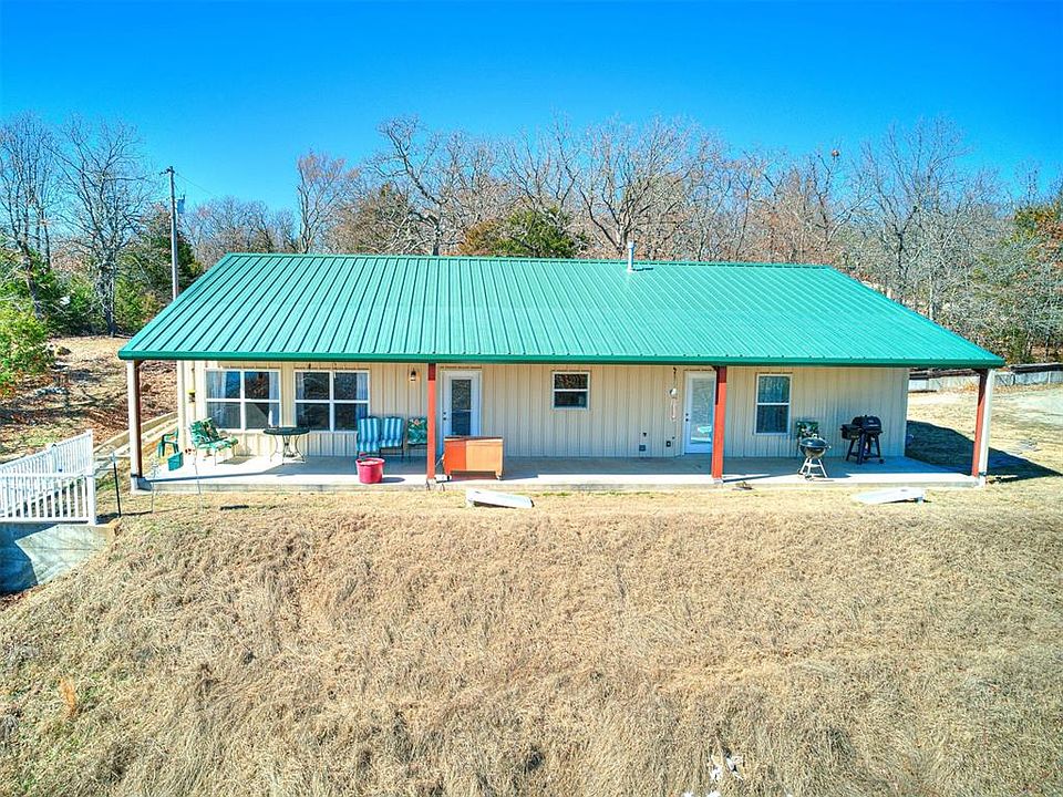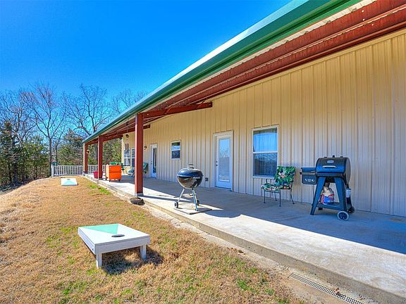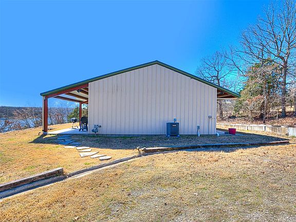 PRIVATE DOCK! You will love this LAKESIDE barndominium that has an open living space with a gorgeous wooden ceiling and lots of natural light. The kitchen has a big breakfast bar as well as plenty of room for additional dining space in the open living area. Check out the gorgeous lakeview from the full-length porch as well as from the living room and kitchen. The primary bedroom is large with a walk-in closet and ensuite bath. Best of all, the property has access to a private boat dock for year-round fishing. The land square footage includes two lots; .3556 acre across the street with the 30X30' workshop and the house itself is on .445 acre. Security cameras in and outside the house included.