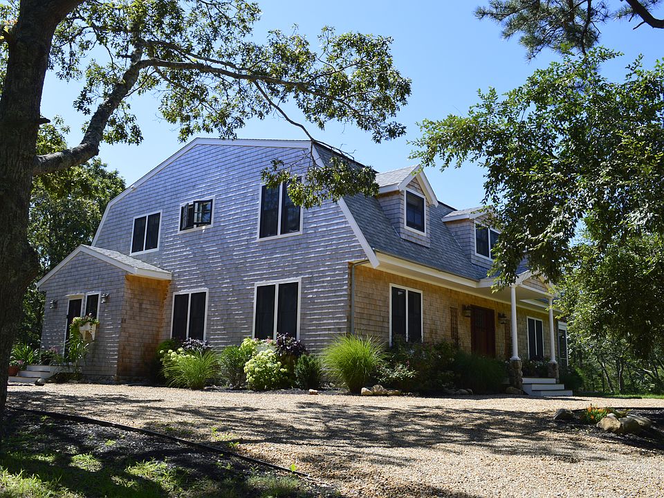 Located in the rolling hills of West Tisbury and a short walk to two of the island’s most beautiful private beaches, this newly-built custom home features four bedrooms and four full baths on over two lovely wooded acres. Utmost attention to detail throughout, including gorgeous wide plank Brazilian cherry floors, gourmet kitchen with Viking stainless appliances and honed granite, luxurious baths with Italian marble and imported tile, elegant Danish fireplace and huge mahogany decks overlooking your own private kettle pond. Very spacious with lots of room for entertaining and relaxing. Room for garage/in-law apartment expansion with five-bedroom septic in place. Fully-furnished with a tasteful mix of antiques and contemporary pieces. Enjoy up-island serenity with the convenience of proximity to shops, restaurants and ferries.