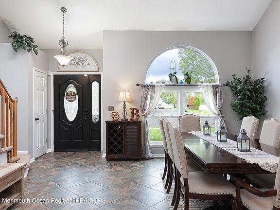 Looking for a stunning home that's move-in ready? Look no further than this gorgeous, four-bedroom colonial-style home nestled in the coveted Parkside community in Howell! From the moment you arrive, you'll be impressed with its impeccable curb appeal, fresh paint, and stylish new pavers leading up to the front door. Step inside to discover a spacious, contemporary living area with a beautifully tiled floor, cathedral ceiling, recessed lighting, and an inviting atrium window - the perfect combination of brightness and elegance. A spacious dining room offers plenty of room for entertaining & boasts gleaming hardwood floors. The gourmet kitchen features stunning granite countertops, a breakfast bar, ample cabinetry, and amazing views of the backyard oasis that's perfect for fun & relaxation. The family room is equally impressive, boasting 10 foot ceilings, a brand-new fireplace, and plenty of space for family and friends to gather. The master bedroom is a retreat unto itself, complete with brand new flooring, his and her closet, and a luxurious en-suite bathroom with a double vanity and newly tiled master bath double vanity granite countertop. The remaining bedrooms are just as inviting, with new flooring throughout. Outside, find true paradise in the lush backyard featuring a beautiful built-in pool and newer wooden gazebo, perfect for outdoor entertaining and relaxation. This home is perfect for a growing family, with plenty of space for everyone to enjoy and has been meticulously maintained with updated roofing, furnace, AC, hot water heater, and security system. Located in an amazing family-oriented neighborhood, this home is close to exceptional schools, major transportation, shopping, worship, and gorgeous beaches. Don't miss your chance to make this spectacular home your own!
