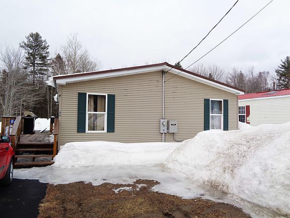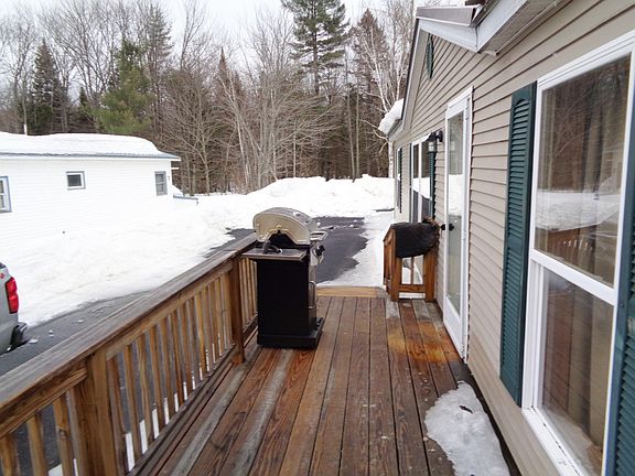 1997 Double Wide mobile home with 3 bedrooms, 2 baths. Open kitchen/dining and living room. Master bedroom has master bath with walk in closets. Carport attached to workshop that has direct entry into back of home. Paved driveway, new deck, updated with central air. Near snowmobile trails and shopping!