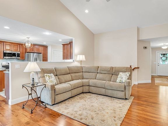 Step into comfort with this stunning single floor home featuring 2 spacious bedrooms and 2 full baths. The sun filled living room showcases a vaulted ceiling and fireplace.The modern kitchen includes granite countertops, stainless steel appliances, a breakfast bar and stylish backsplash. Enjoy the dining room for entertaining, the bright all season sunroom offers additional living space, large deck for outdoor relaxation, inviting front porch, and a convenient 2 car garage. The main bedroom offers a tray ceiling, full bath with stand up shower, double vanity, and walk-in closet. Located in the area's premier 55+ community, The Gardens of Wilbraham, you’ll have access to a resort style clubhouse, featuring an outdoor heated pool, library, activity room, a fitness room and numerous amenities and activities. Maintenance free style awaits. Open House on Saturday, June 15th from 12-1:30pm.