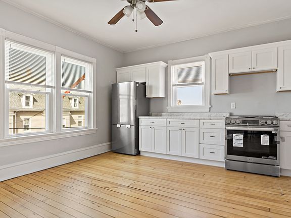 A beautifully renovated and spacious two-bedroom apartment located on the second floor, offering both comfort and convenience. This bright and airy home features a large eat-in kitchen with brand-new appliances, including an induction stove, dishwasher, and refrigerator. The separate dining room and living room are adorned with hardwood floors and an abundance of windows that fill the space with natural light. The property boasts picturesque views of the historic Battleship Massachusetts and is within walking distance to the new commuter rail station, making it ideal for commuters. Laundry facilities, featuring a brand-new washer and dryer, are conveniently located in the basement. One off-street parking space is included for your convenience. Recent renovations to the building include new Hardie board siding, energy-efficient windows, and modern mini-split systems that provide both heating and air conditioning year-round. This pet-friendly home blends modern amenities with classic charmdon't miss the chance to make it yours. REQUIREMENTS: This is a PET-FRIENDLY and NON-SMOKING building. All applicants must demonstrate a steady, verifiable income of at least 2.5 times the monthly rent (gross), possess a positive credit history with a minimum credit score of 600, have no prior evictions, and provide a solid landlord reference. Following a showing, those interested in applying may proceed with a full application. At that time, a $40 application fee will be required, along with income verification and valid photo identification for all individuals over the age of 18. Contact us today for more information or to schedule a showing.