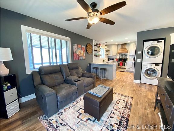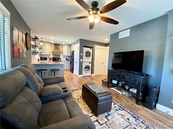 Gorgeous, Lakeview Cabin just minutes from Ha Ha Tonka! Picturesque setting with the covered wraparound porch, cedar shutters, and fire pit area in a quaint neighborhood just minutes from the Camdenton square. Step inside to a farmhouse feel with luxury plank vinyl flooring, granite countertops, craftsmen style doors, and an open concept floorplan. The kitchen has stainless steel appliances, a custom stove hood, modern open shelving, subway tile backsplash, a built-in wine rack, and spacious bar with seating room! Other updates include new energy efficient windows and new roof installed in 2018. The yard lays nicely with room to build a garage/ shop or to add onto the house if desired. There is a private boat ramp nearby that is currently allowed to be used by the public and also the Larry R Gale Access just 20 minutes away on the 2 MM of the Niangua Arm. Enjoy affordable lake living in a convenient and beautiful location!
