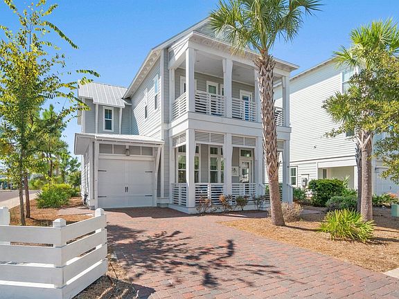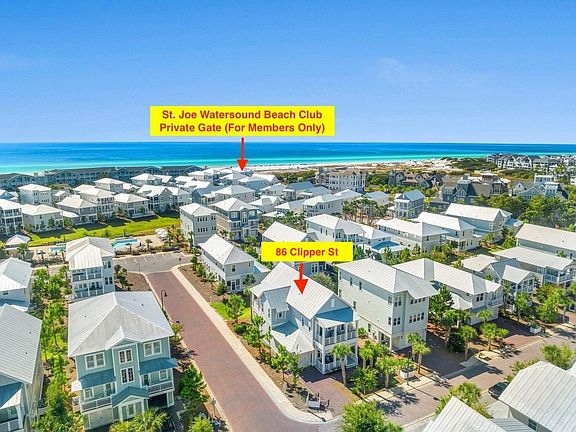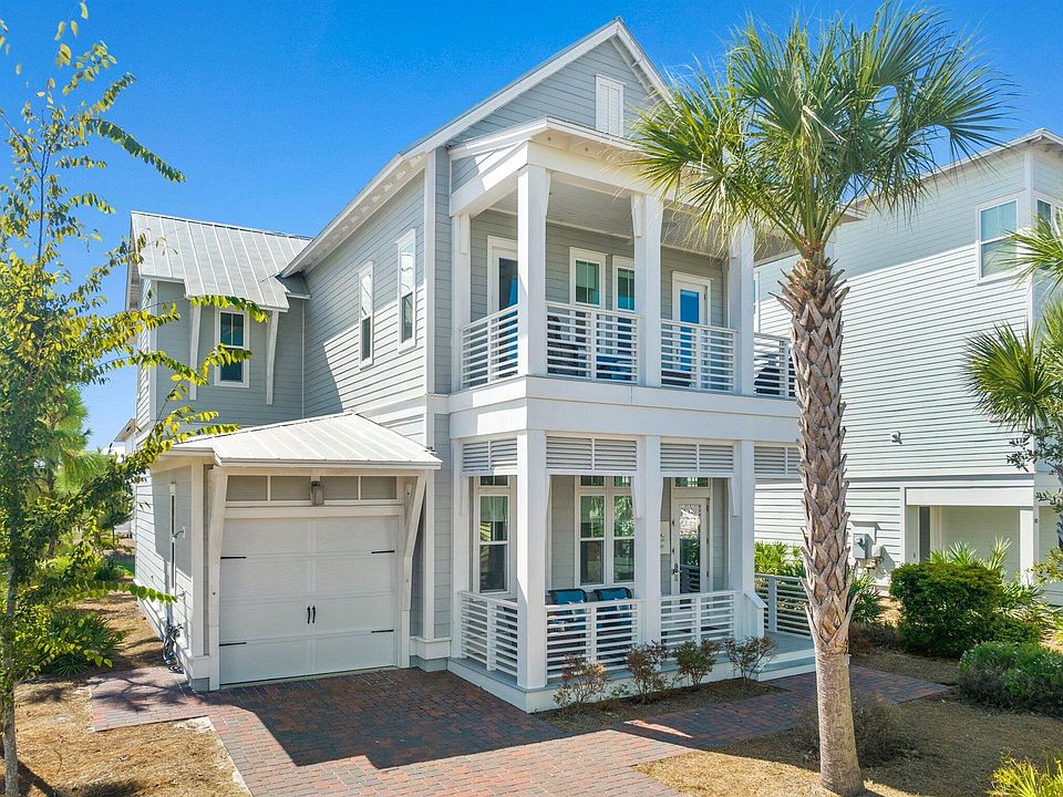 Luxury details inside and out, immaculate condition and perfectly situated on a corner lot south of 30A steps from the resort style pool, The Big Chill, and Members-only private gate access to the Watersound Beach Club. The most unique and desired 'Laguna' floor plan features (4) bedrooms with each room featuring its own private bath and covered porch, (4.5) bathrooms, and an oversized (1)-car garage. Strong rental numbers and offered fully furnished, this breathtaking professionally designed home with high-end furnishings and decor in calming coastal blues and neutrals is a stunner the minute you walk into the open, airy and bright space. Turn-key ready for 2023 with strong bookings!
