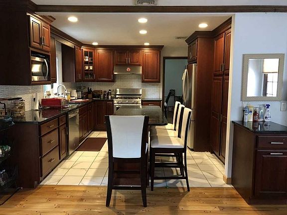 This home is in the desired Blueberry Hill section of Longmeadow. Less than a five minute walk to Blueberry Hill and also a short walk to the Longmeadow Shops, Williams Middle School and Longmeadow High School. Home has an almost new custom kitchen with beautiful granite counters, tile floors and coordinating tile back splashes. Open floor plan from family room to kitchen. Beautiful hardwood floors in all bedrooms, dining room and living room. Family room has a sliding door to the deck of the large back yard. Basement has a large finished room. Home has central air and a full size attached two car garage. Owner is including all lawn care for the enjoyment of the tenant. Home has efficient gas heat and central air conditioning. This is an exceptional home that is in a very convenient location.