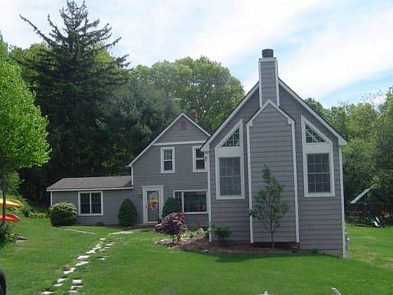 3 or 4 Bedroom Home on 8+ acres of beautiful privacy. 2 baths, eat in kitchen, DR, LR FR, Stone fireplace, cherry floors and 14' ceilings in beautiful new FR addition. 8+ private acres at the end of a dirt road. 3 car post and beam garage with full pine loft built in 2001. Carriage house with generator hookup, pool and screened gazebo. Great property for farm, construction, or privacy. 2 wells, newer septic, roof and siding.