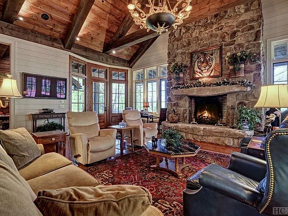 This magnificent property, w/uninterrupted views of Whiteside & Devils Courthouse, is close to the crossroads of Cashiers, yet tucked away for privacy in Silver Slip Falls. Meticulously designed & built by the present owners in 2008, the home features 4 bedrooms and 4 ensuite baths w/master & second bedroom on the main floor. The attention to detail is unrivaled--every door in the house was handmade, and heart pine floors, ship lap, and old barn wood are used throughout. There are 3 fireplaces made from Tennessee river rock. The floor plan features a great room with windows on 3 sides, and a lovely study with built-in bookcases. The large kitchen has beautiful cabinets, Wolf-range with double-ovens, a spacious island, and granite countertops. Adjoining the kitchen is a large keeping room with stone fireplace and plenty of room for dining and/or sitting that opens onto a spacious porch with additional dining space. A unique brick arched gallery extends through the center of the home connecting living spaces, bedrooms, laundry room, and powder room. The master bedroom has a tray ceiling and a large bath with separate lavatories, a soaking tub, and separate shower. The spacious laundry room is close by the master bedroom and is fully equipped with washer/ dryer, laundry sink, hidden ironing board and storage behind antique doors. Upstairs are 2 bedrooms, each with en suite baths and an area with room for bunk beds or extra living space. Handsome shutters are in all four bedrooms. The yard is filled with beautiful hosta, oak leaf hydrangea, boxwoods, and other carefully selected flowering perennials. Don't miss the opportunity to see this breathtakingly beautiful home. It is a treasure for sure!