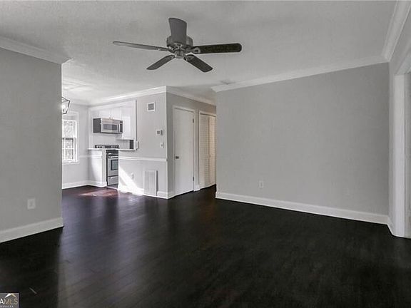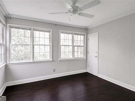 Top-floor renovated 1 bedroom, 1 bath that has bonus sunroom looking out to a wooded view. Kitchen has been opened up and features granite countertops, stainless appliances. Bathroom has black and white tiled floor, newer white vanity, fan and opens to a generous walk-in closet. The bedroom, living room and sunroom all have ceiling fans. Sunroom overlooks wooded area and works as a home office, studio or library. Cross Creek is a gated community tucked away in west Buckhead which is residential by nature and just 2 miles from Peachtree Road. The amenities include an 18-hole golf course with pro-shop, 3 swimming pools with adjacent clubhouses, 4 tennis and pickle ball courts, a gym ($35 extra/month,) a restaurant and cafe, Electric Vehicle Charging Stations, is dog friendly and over 2 miles of roads for walking. The location can't be beat and is central to 75, 85, 400 & 2-85. The Atlanta airport is just a 15-minute drive, Buckhead entertainment and business district, Midtown and Downtown are 10 minutes, The Battery/Truist Park and Vinings are 15 minutes away. Award-winning Morris Brandon is just a mile away. Copyright Georgia MLS. All rights reserved. Information is deemed reliable but not guaranteed.